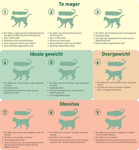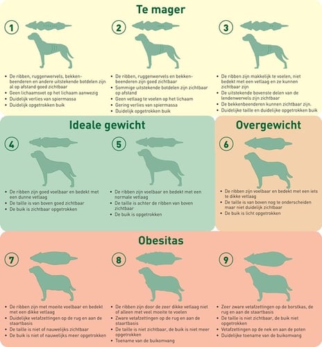 Twijfelt u of uw dier te zwaar is? U kunt bij ons kosteloos langs komen om de LCS (lichaamsconditiescore) te laten beoordelen. Hiernaast ziet u hoe wij deze beoordeling geven. Aan de hand van deze score kunnen we u tips geven om uw dier op een gezonde manier af te laten vallen. Dit moet namelijk niet te snel gaan.